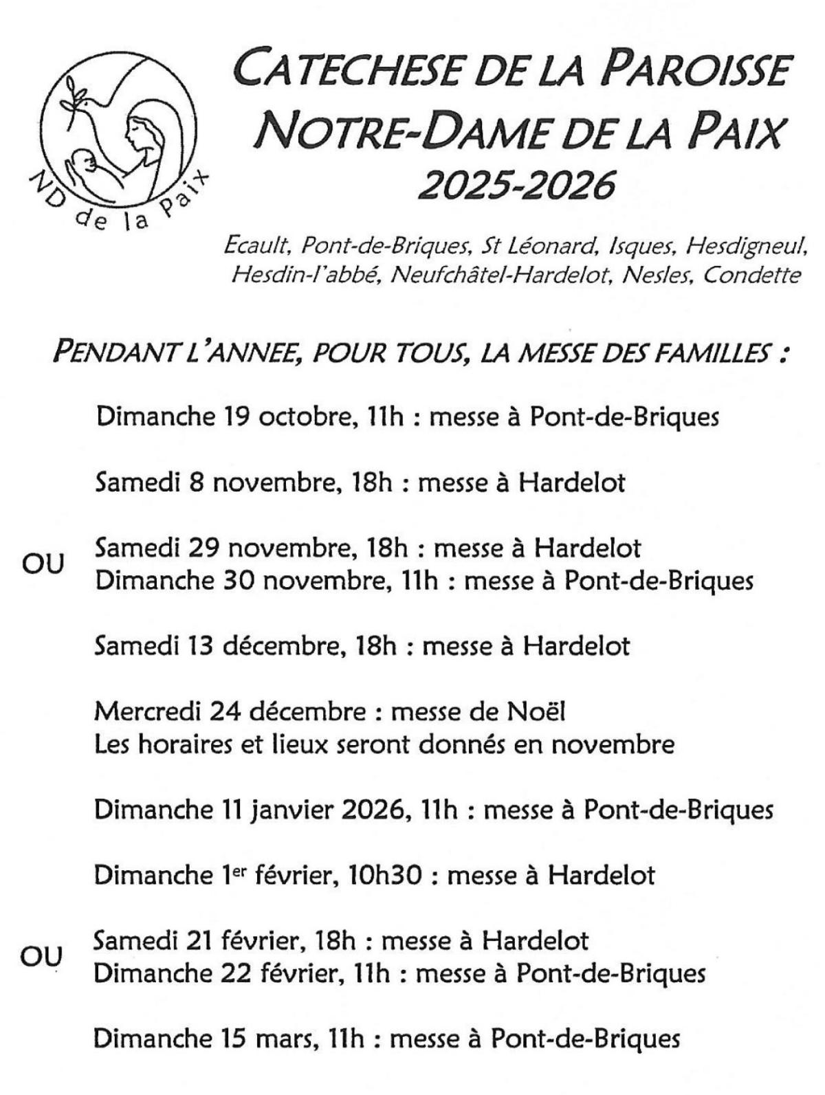 Diverses propositions sont faites pour favoriser l'éveil à la foi pendant la petite enfance (3 ans 7 ans) : Célébrations festives avec d'autres familles pour Noël et Pâques. Une nouvelle proposition pour les enfants de 7 ans : Puis à partir du C.E.2 et durant 4 ans, les enfants se retrouvent chaque semaine en petite équipe de 6-7 avec un ou une catéchiste bénévole